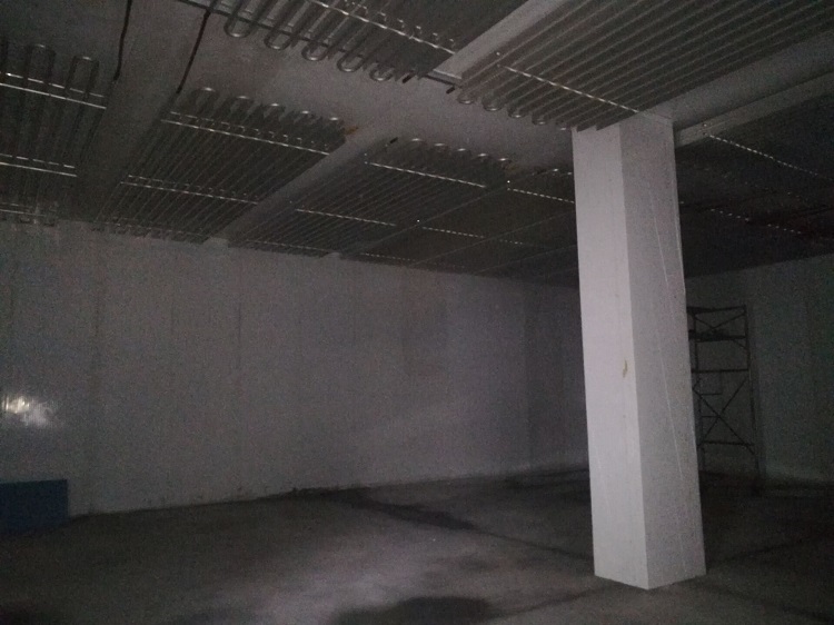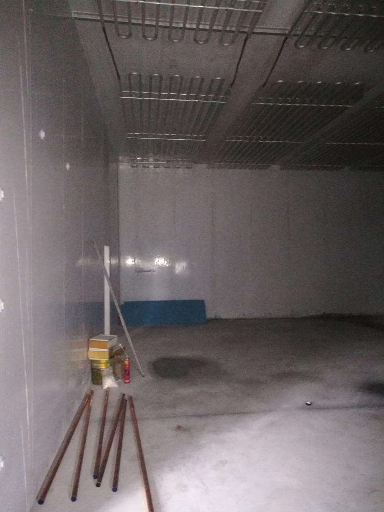 冷庫采用120mm聚氨酯保溫板雙面彩鋼板,地面鋪設100mm擠塑板后鋪設100mm水泥。